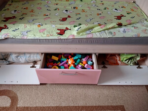 Продам кровать с объемным бортиком дельфин, внешне в хорошем виде, ручки не расшатаны, все шкафчики добротно сидят. Треснула плёнка на среднем шкафчике, немного на кромке помарки. Прослужила около 4 лет, кровать рассчитана до взрослого возраста. Не собирались продавать, но нужна двухъярусная.