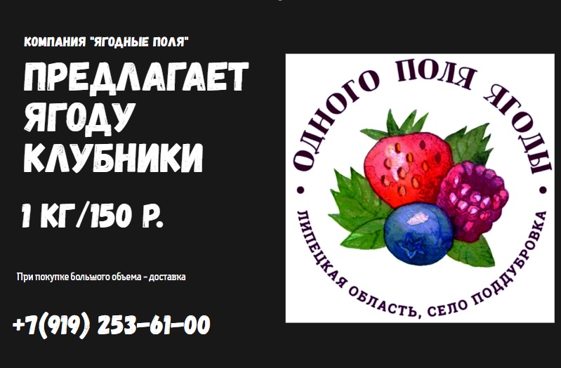 Компания ООО "Ягодные поля" предлагает ягоду клубники. 1 кг/150 р. При покупке большого объема - доставка.